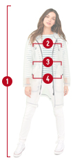 | Taille | 1 Stature | 2 Tour de poitrine | 3 Tour de taille | 4 Tour de bassin |