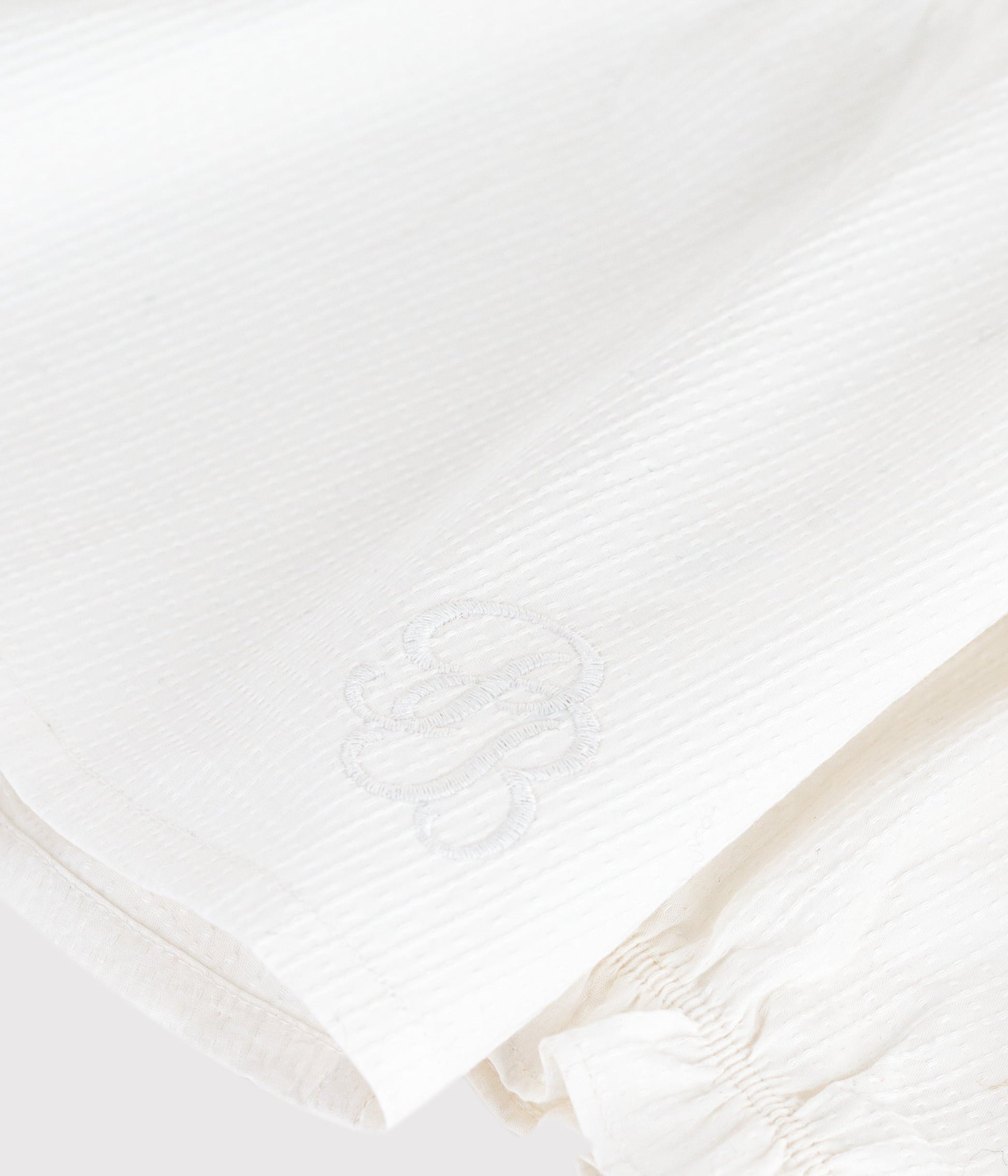 Blouse bébé en popeline de coton manches longues, à col et brodée