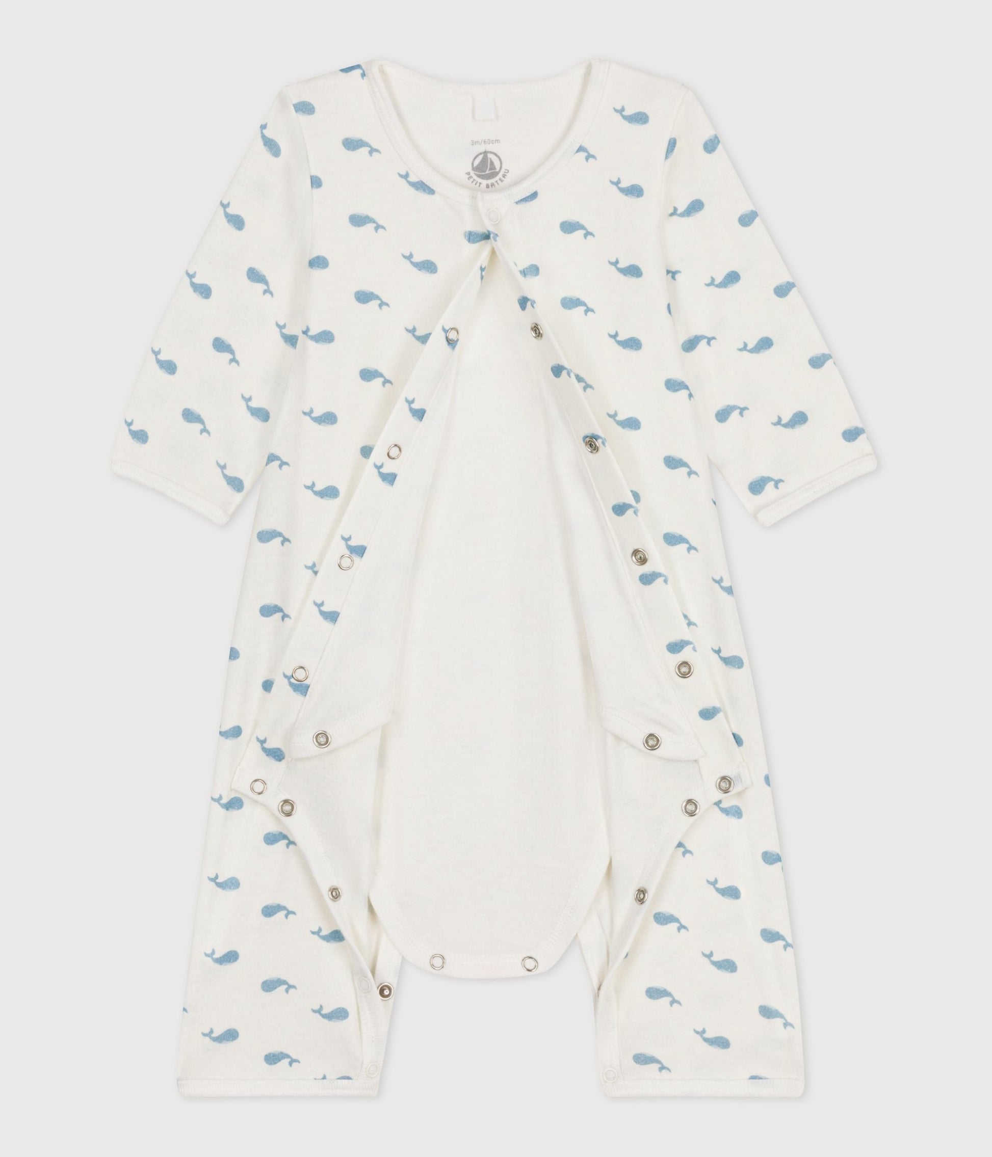 Bodyjama bébé sans pieds en coton imprimé baleines