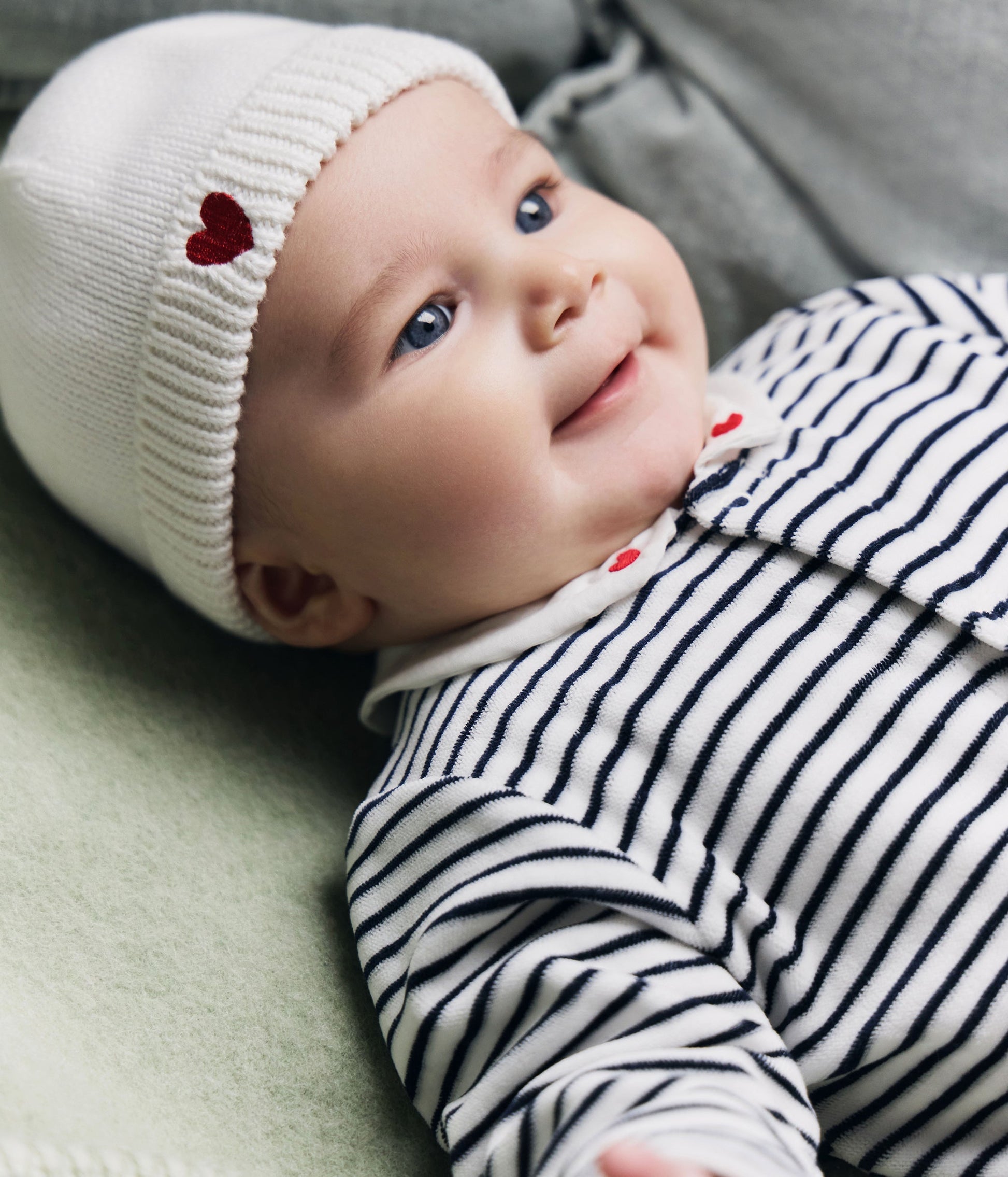 Bonnet raffiné avec détail cœur brodé, à associer avec toutes les tenus de bébé.