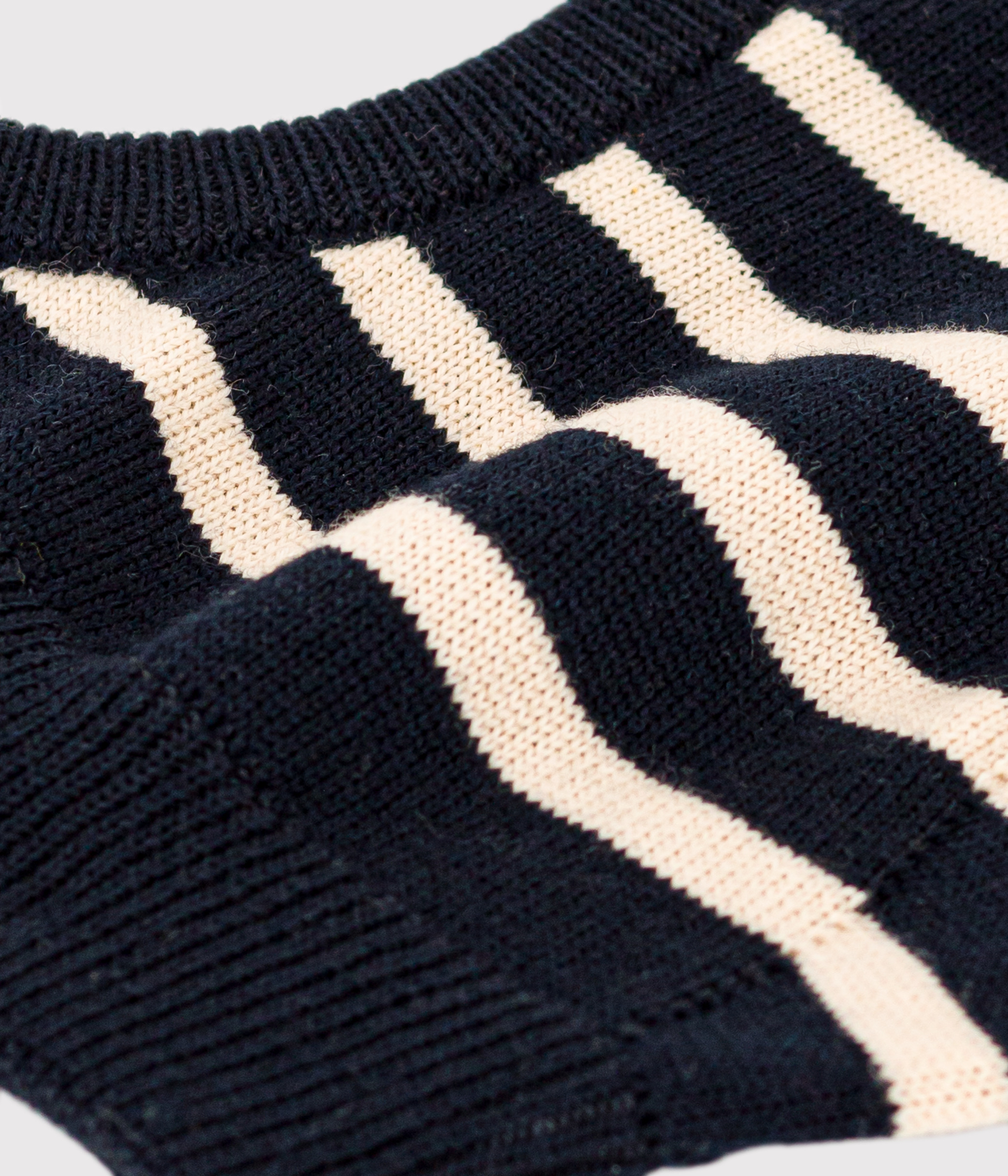 Cagoule à rayures, un essentiel pour la saison hivernale. En laine et coton, elle tiendra chaud à bébé.