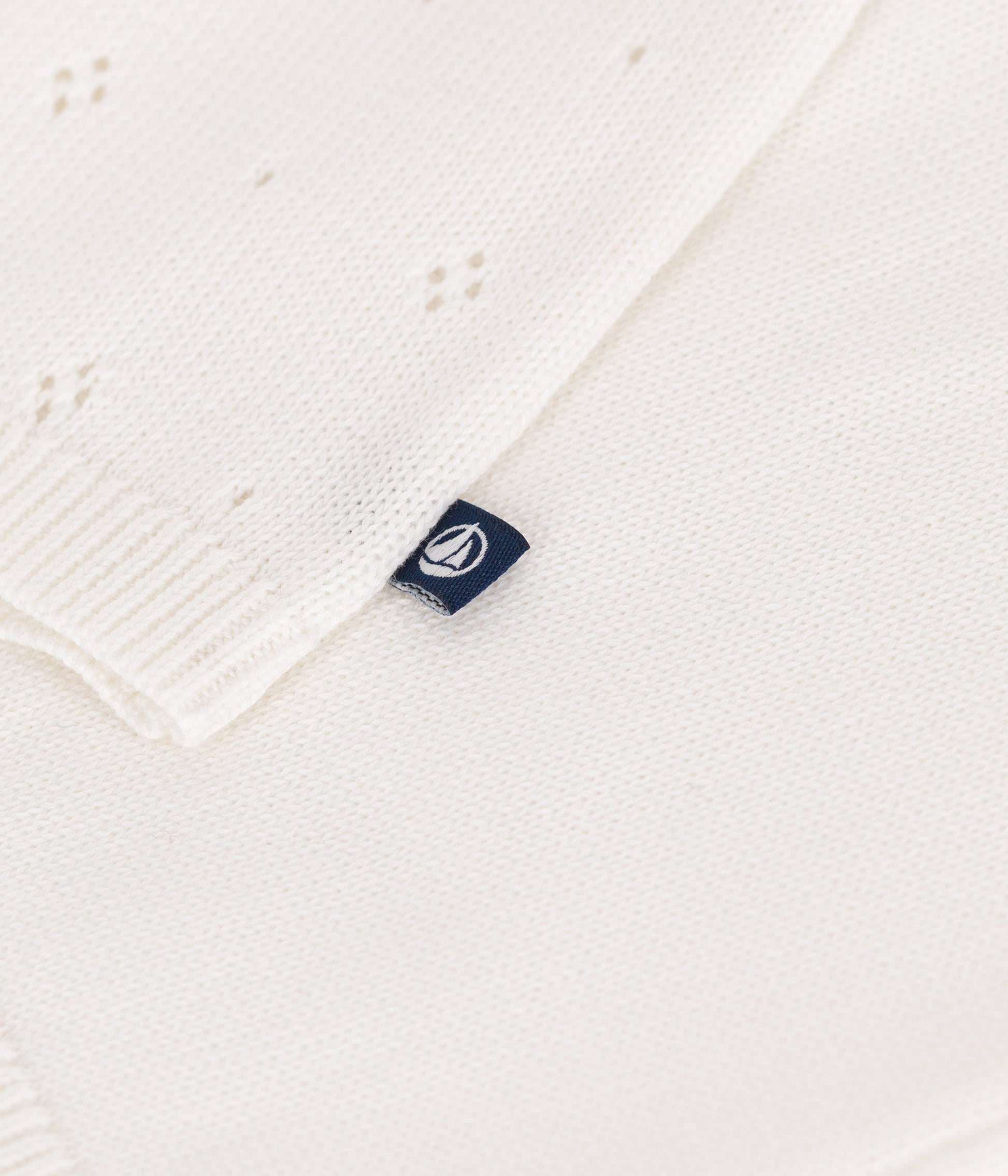 Gilet fille en tricot coton ajouré sur le devant. Le point fantaisie apporte une touche chic !
