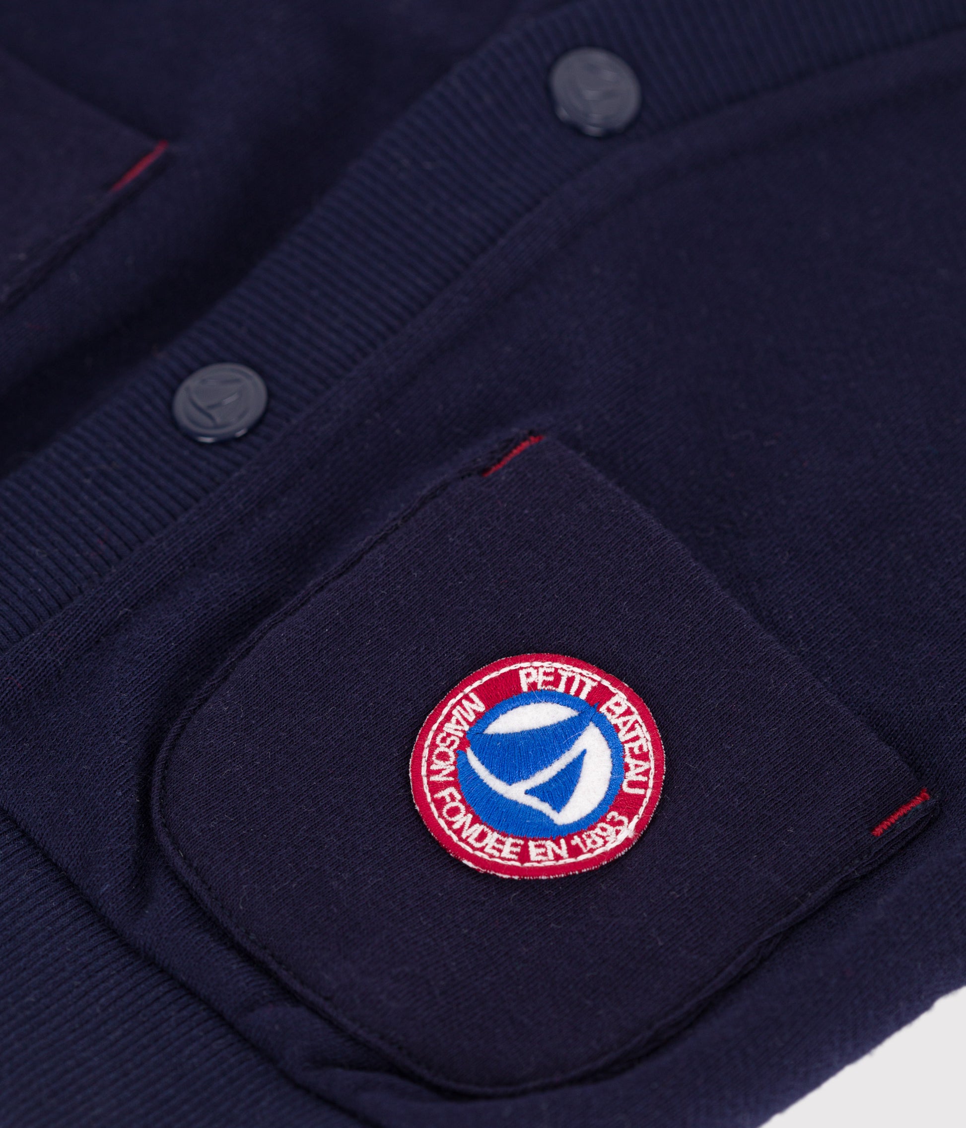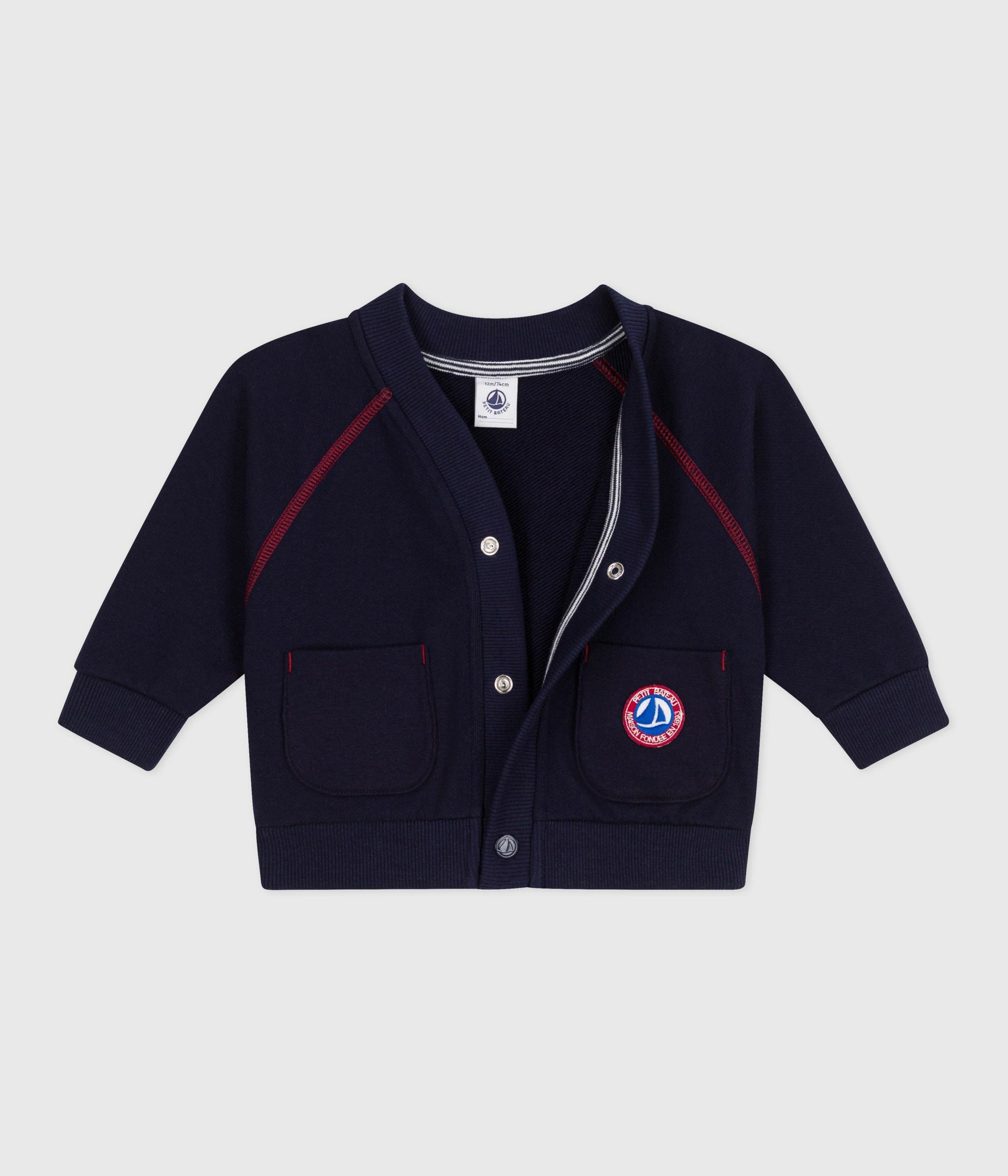 Cardigan bébé en coton uni, coutures contrastées