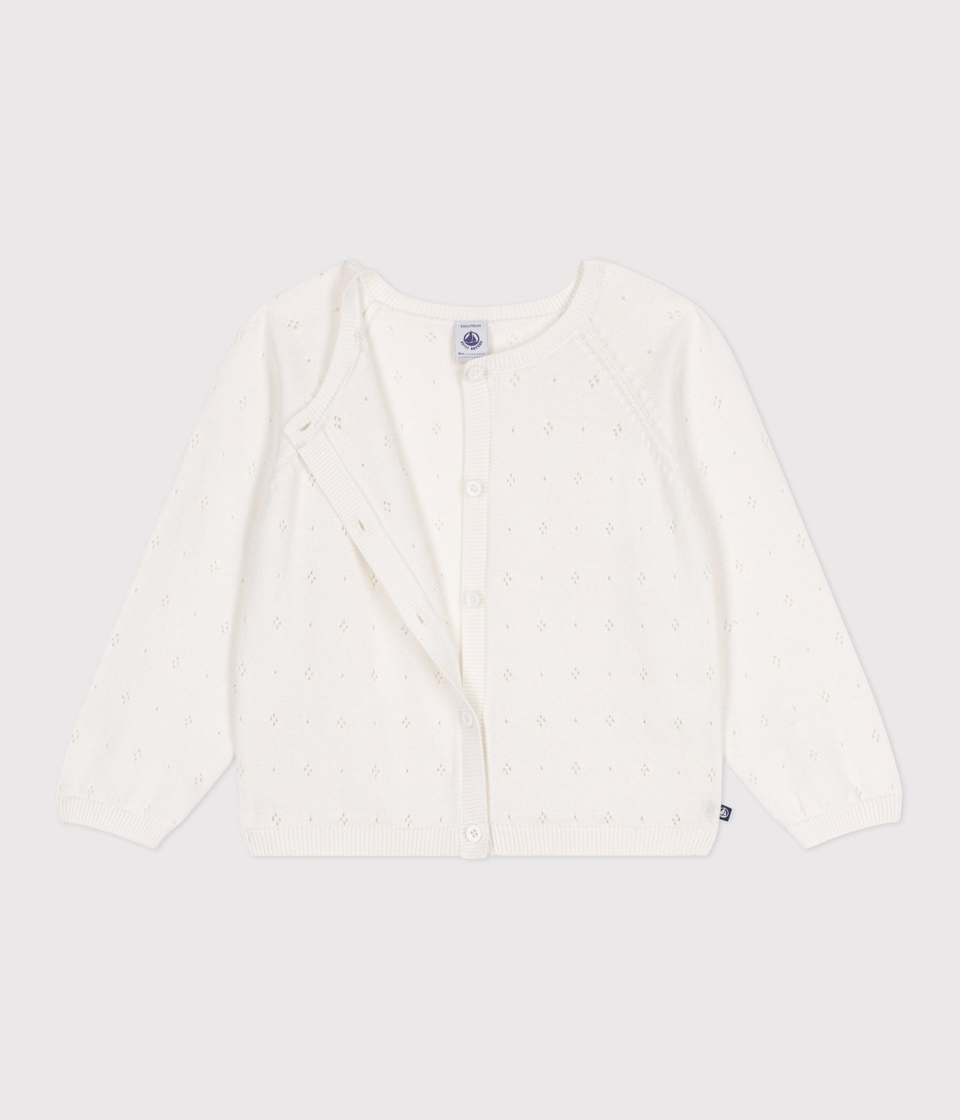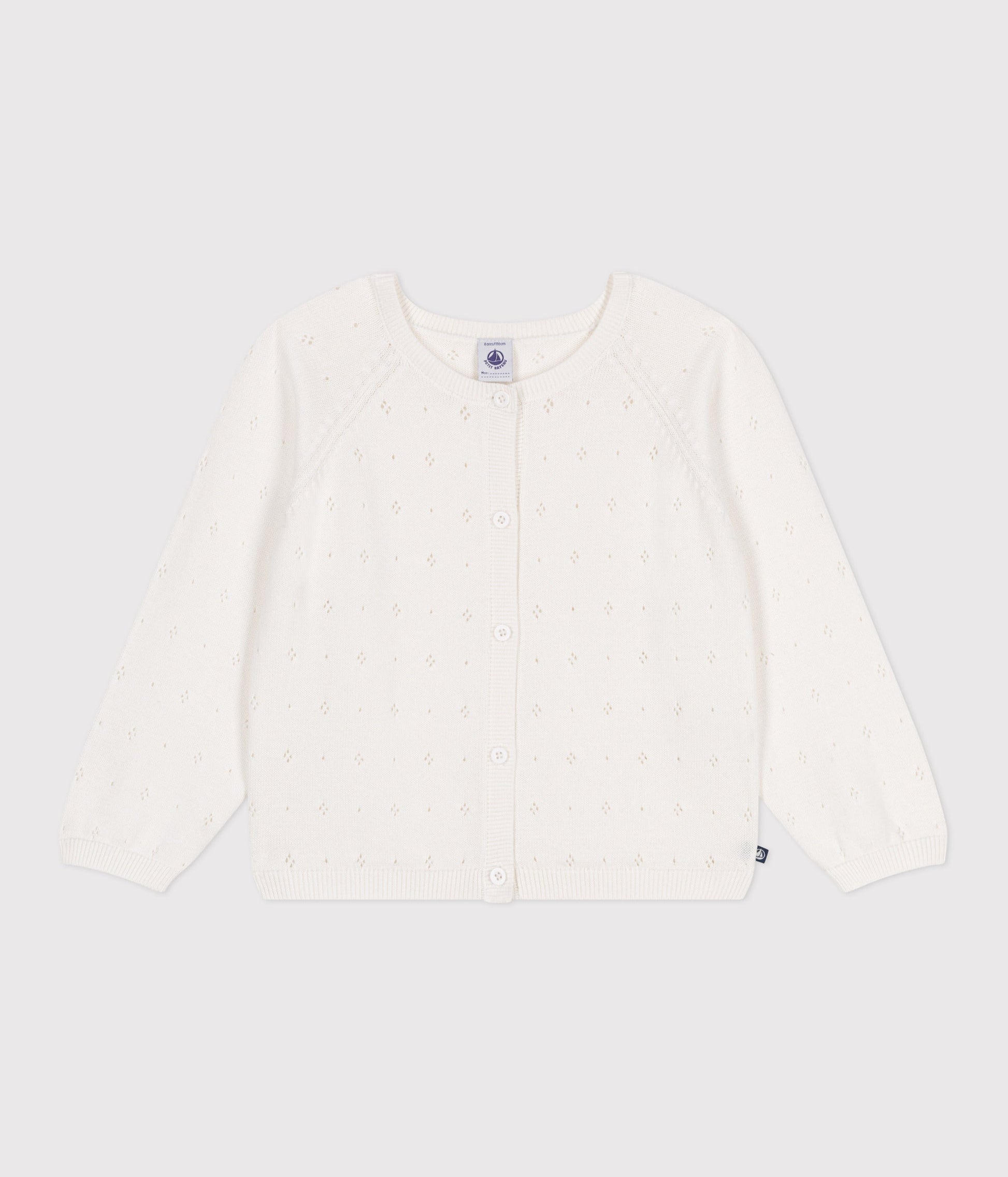 Gilet fille en tricot 100% coton avec un point ajouré.