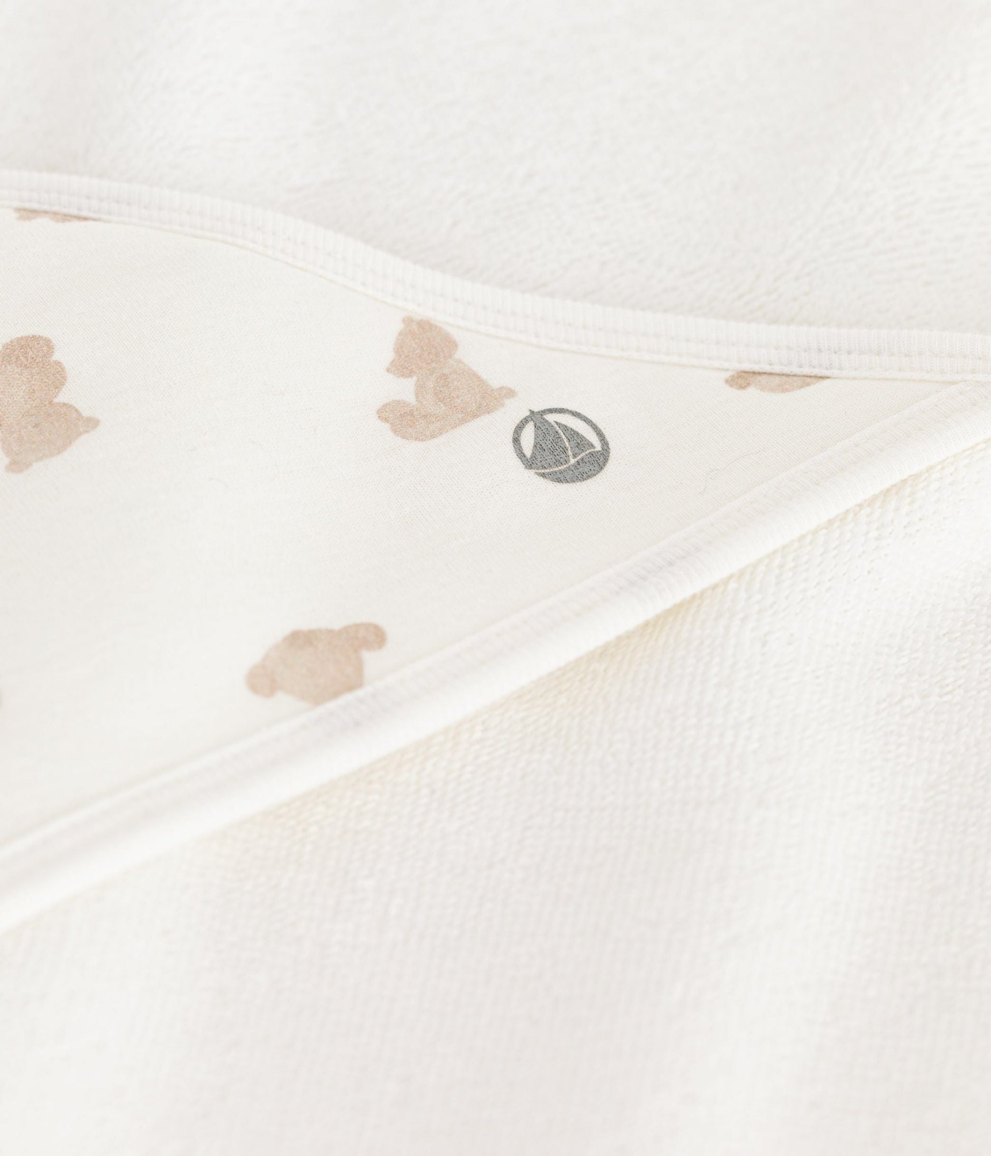 Capuche imprimé ours en côte 1X1, une matière extensible et confortable.