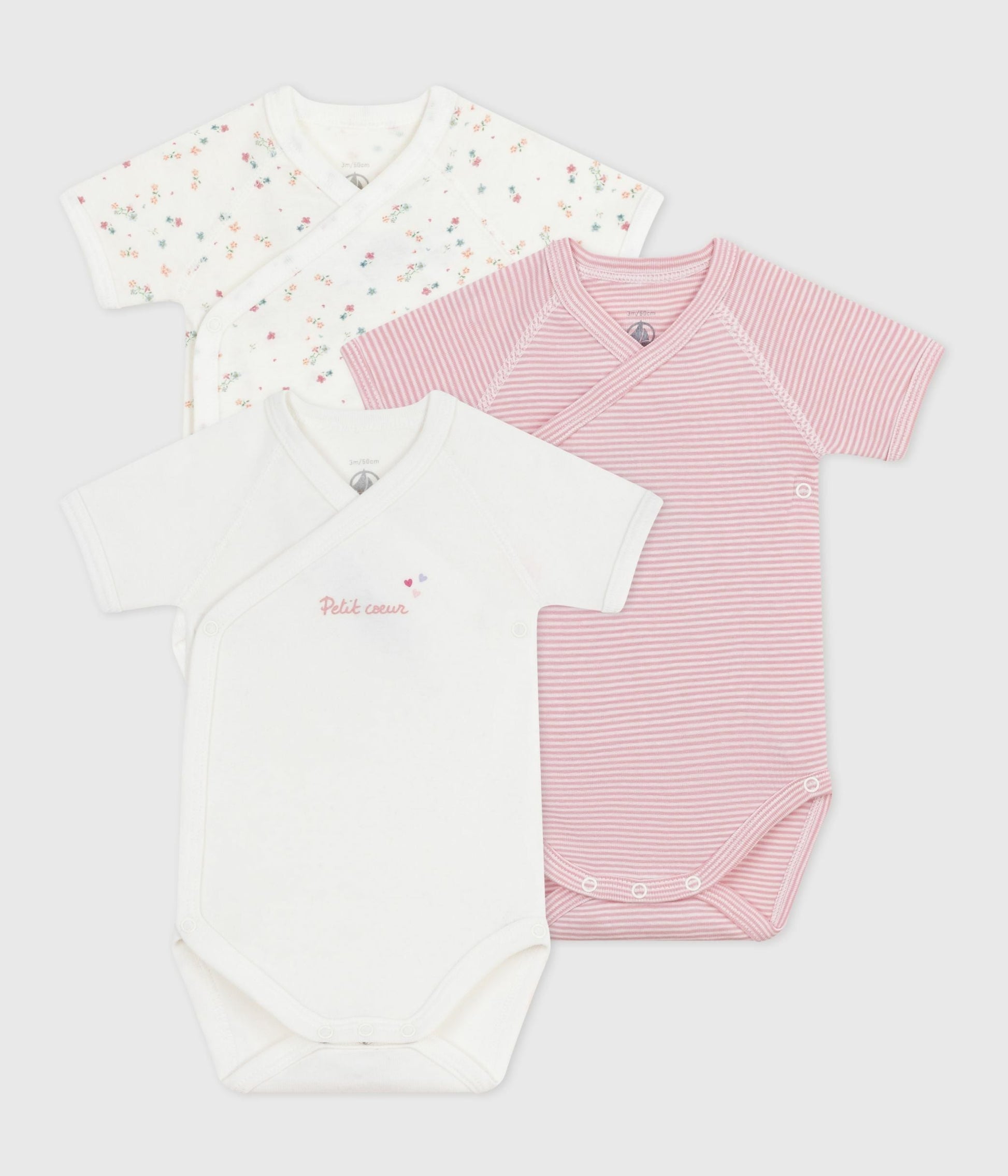 Lot de 3 bodies croisés manches courtes en côte 1X1, une matière extensible et confortable.
