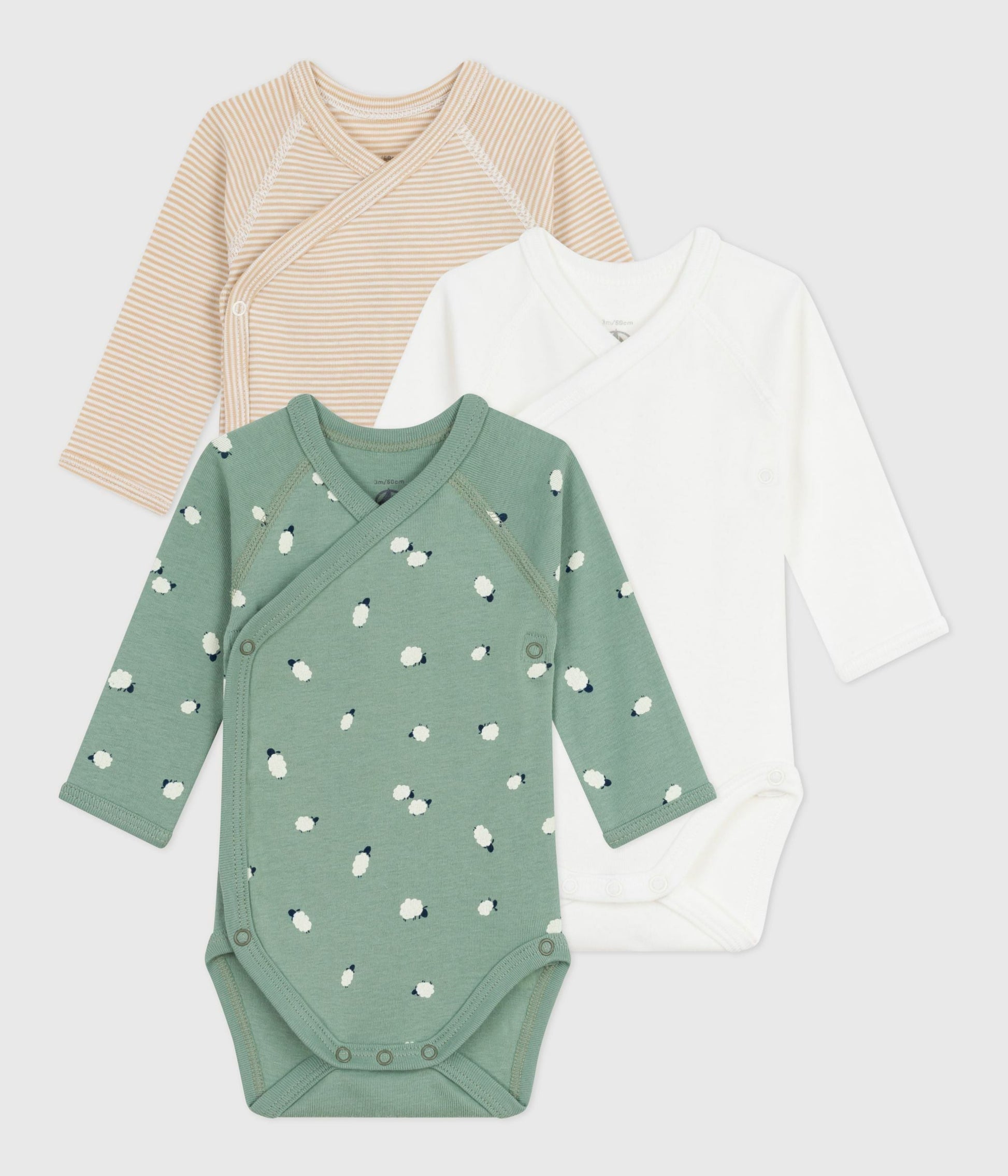Lot de bodies croisés manches longues en coton imprimé bébé