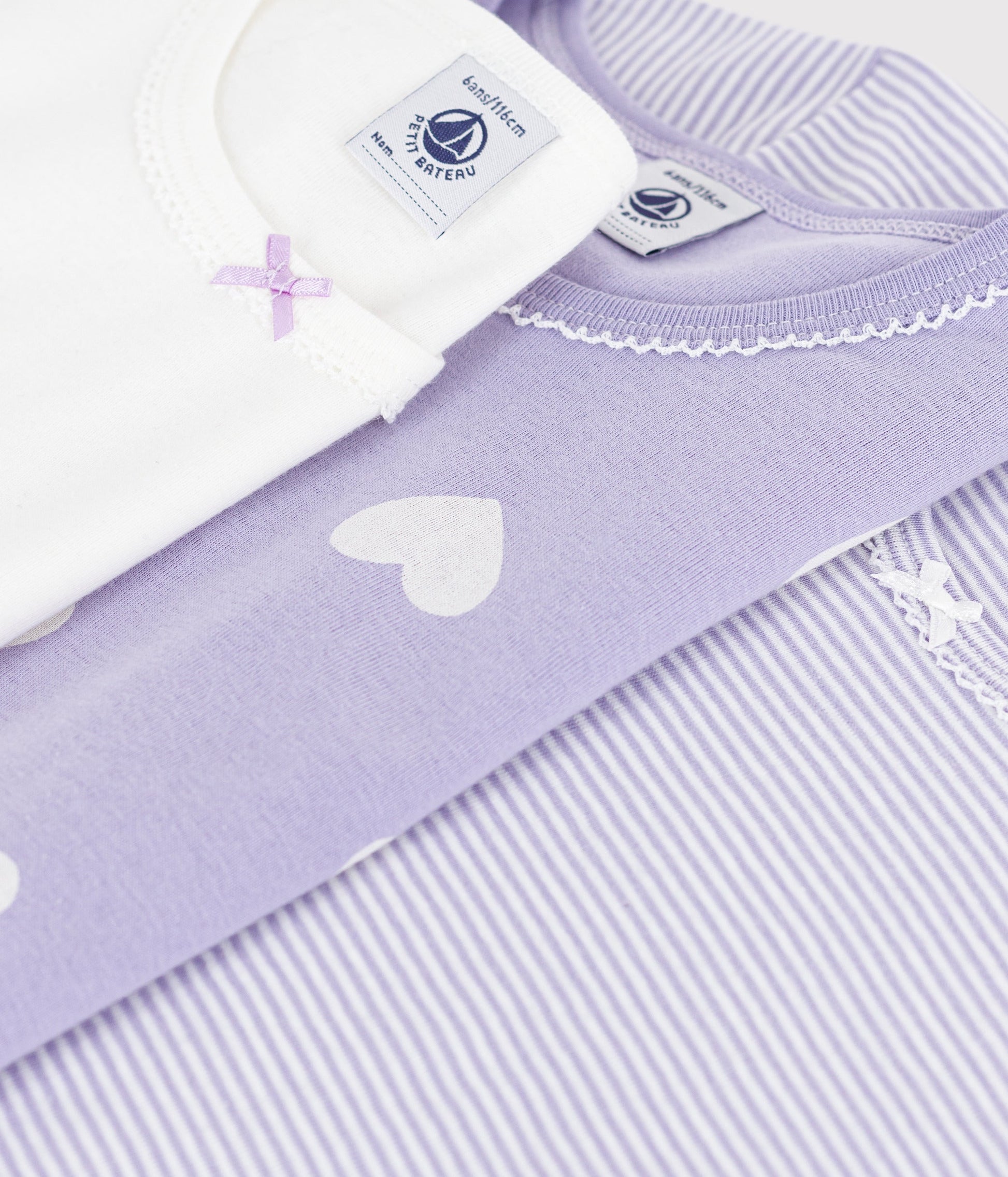 Finition picots, et nœud sur les tee-shirts unis et rayés.
