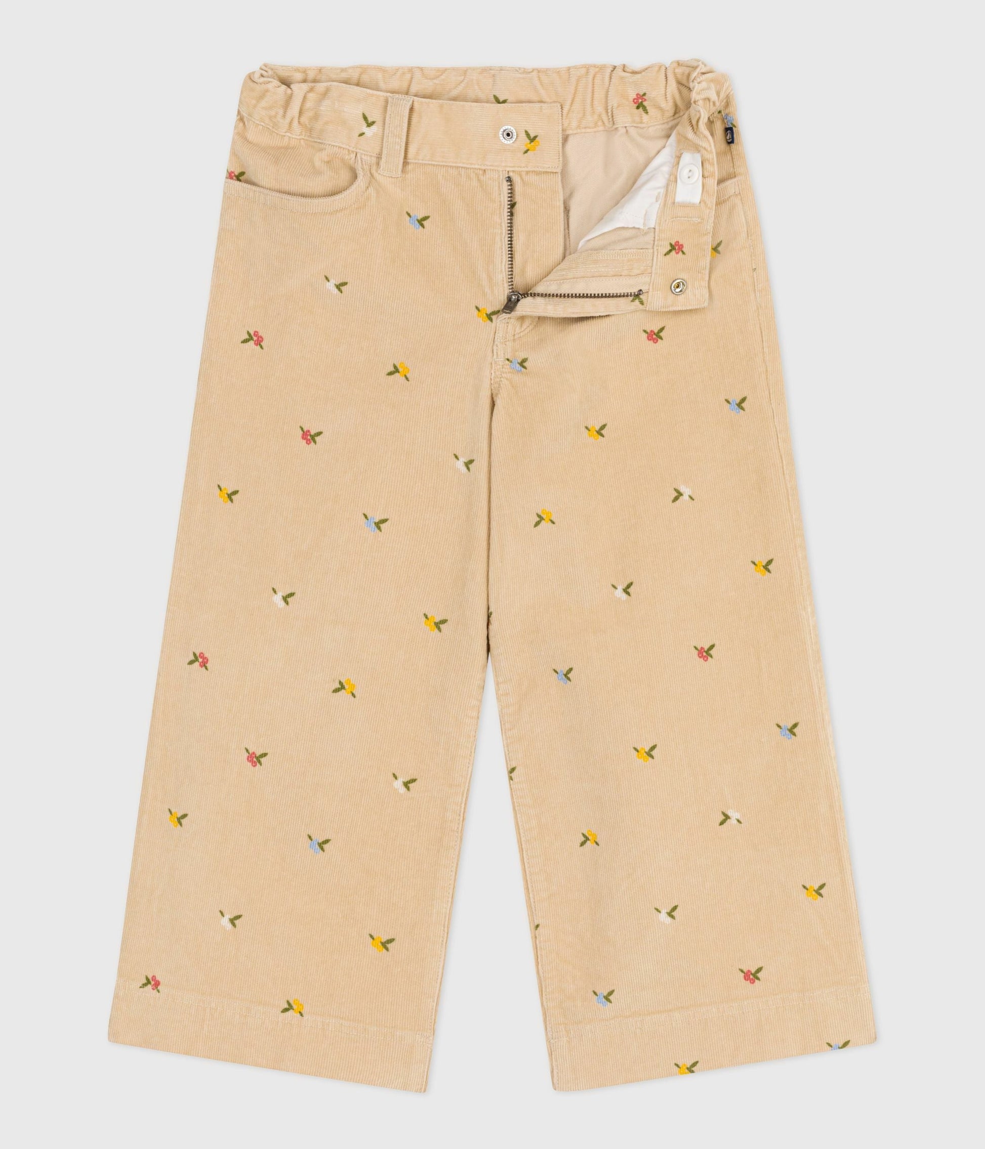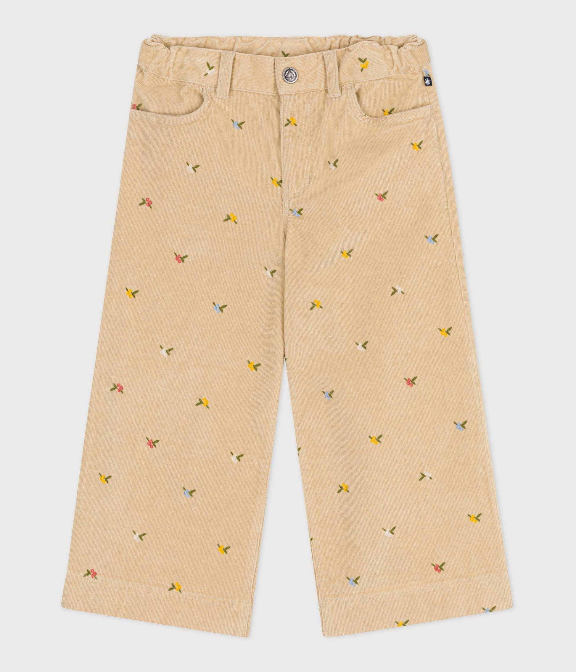 Pantalon fille en velours côtelé à motifs, confortable et tendance, idéal pour l'hiver.