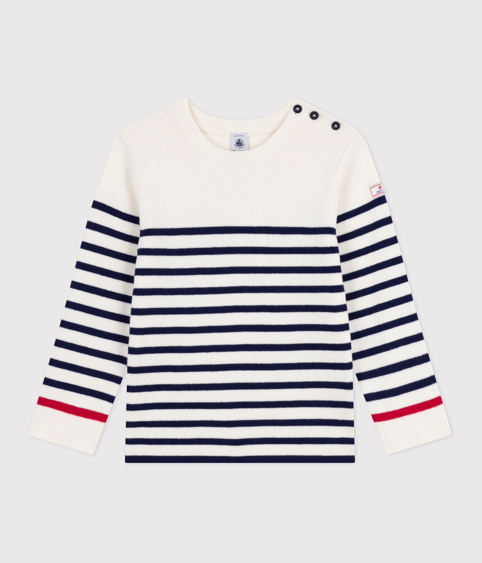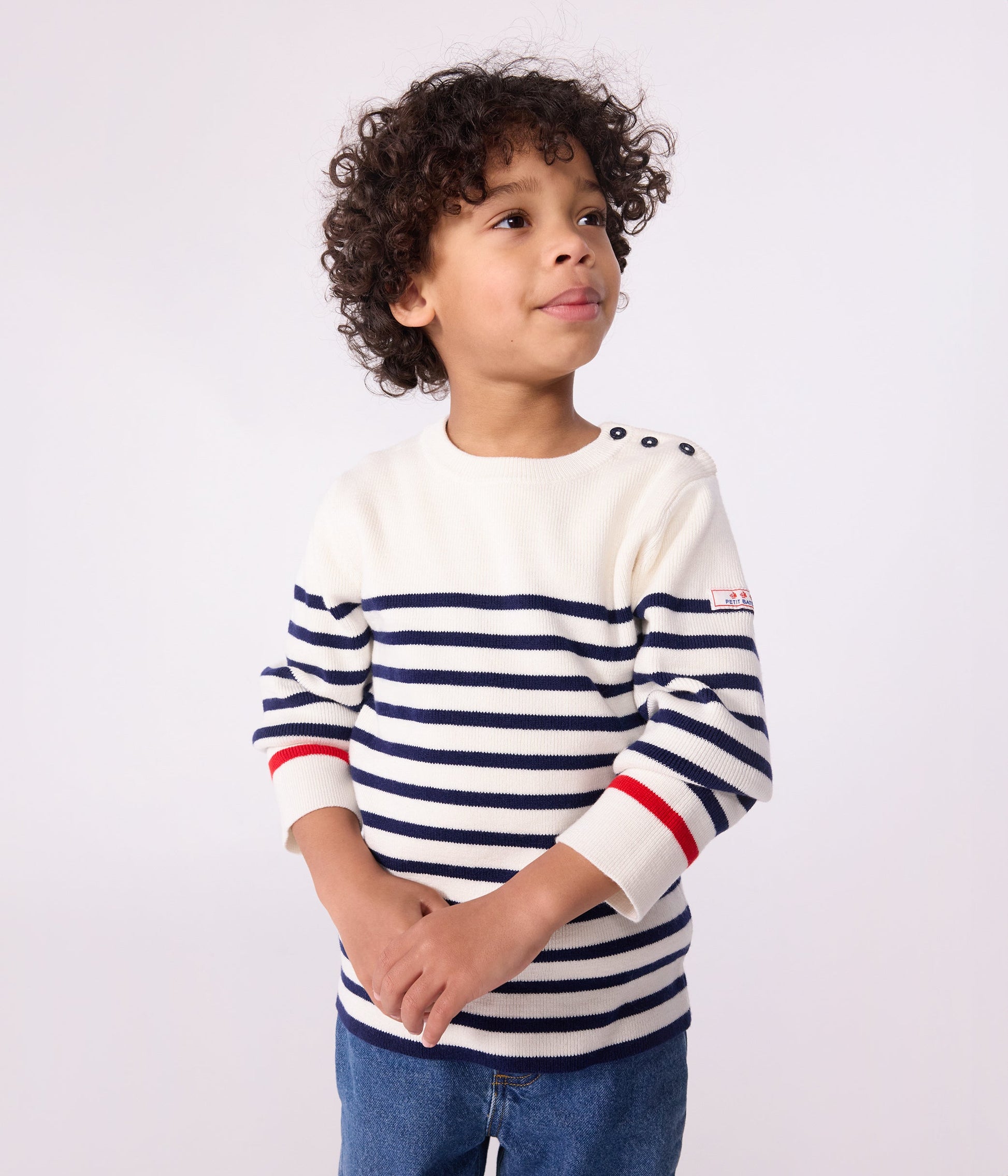 Pull marin iconique à rayures mixte en tricot de laine, doux et chaud pour l'hiver.