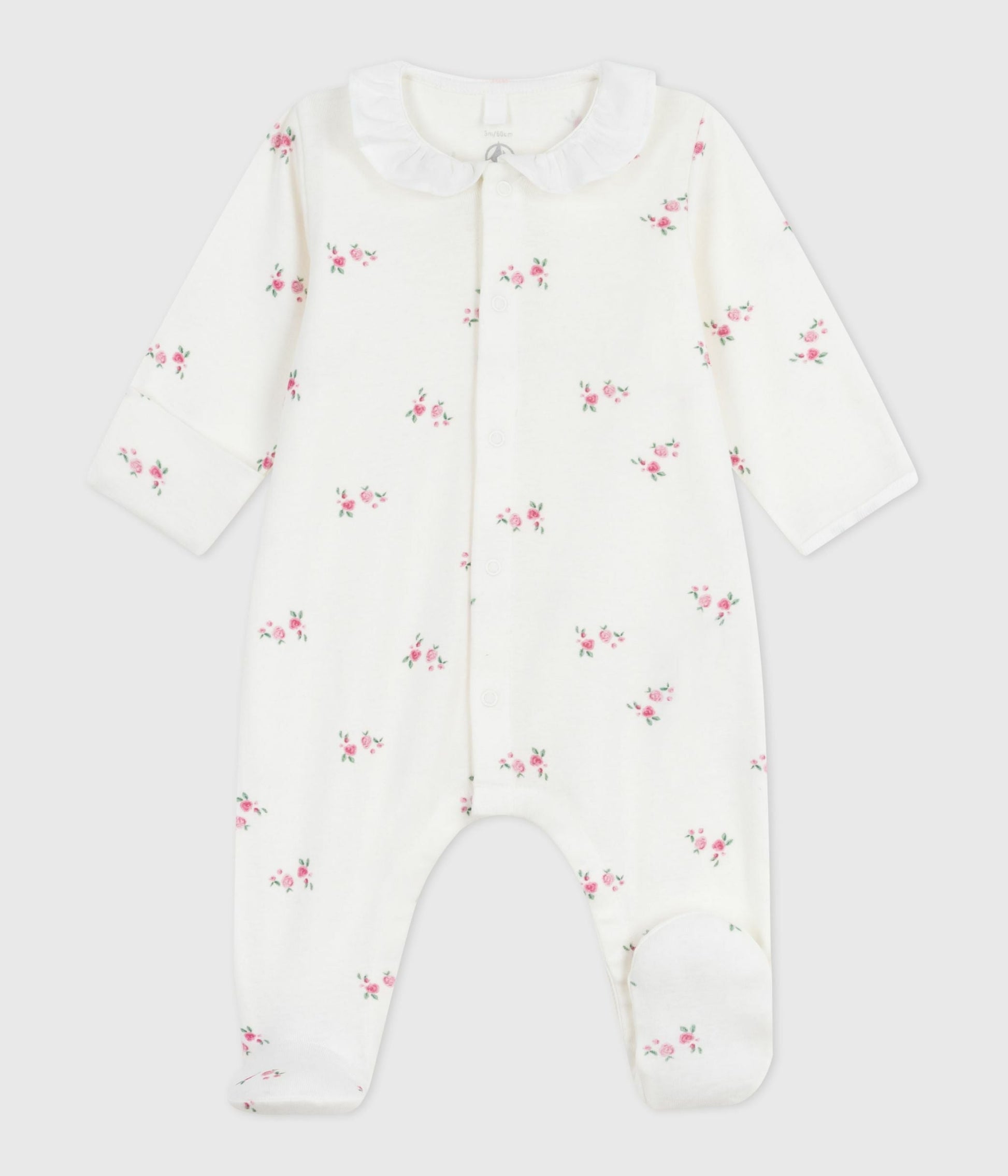 Ce pyjama raffiné et féminin, avec un col collerette, est idéal pour un cadeau de naissance.