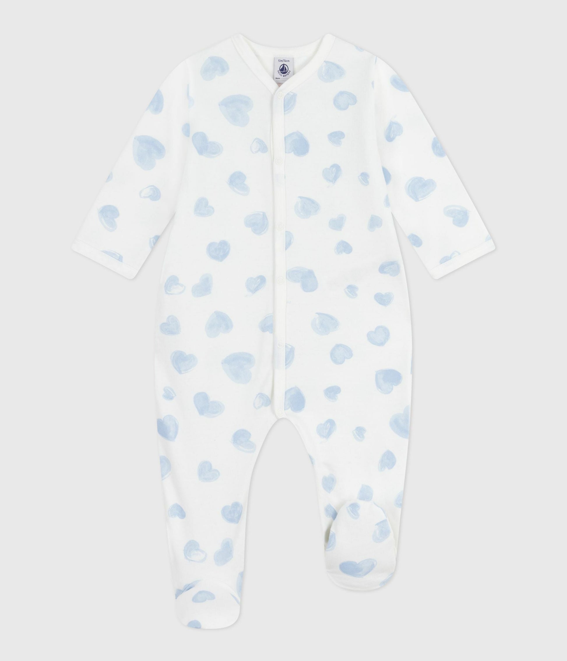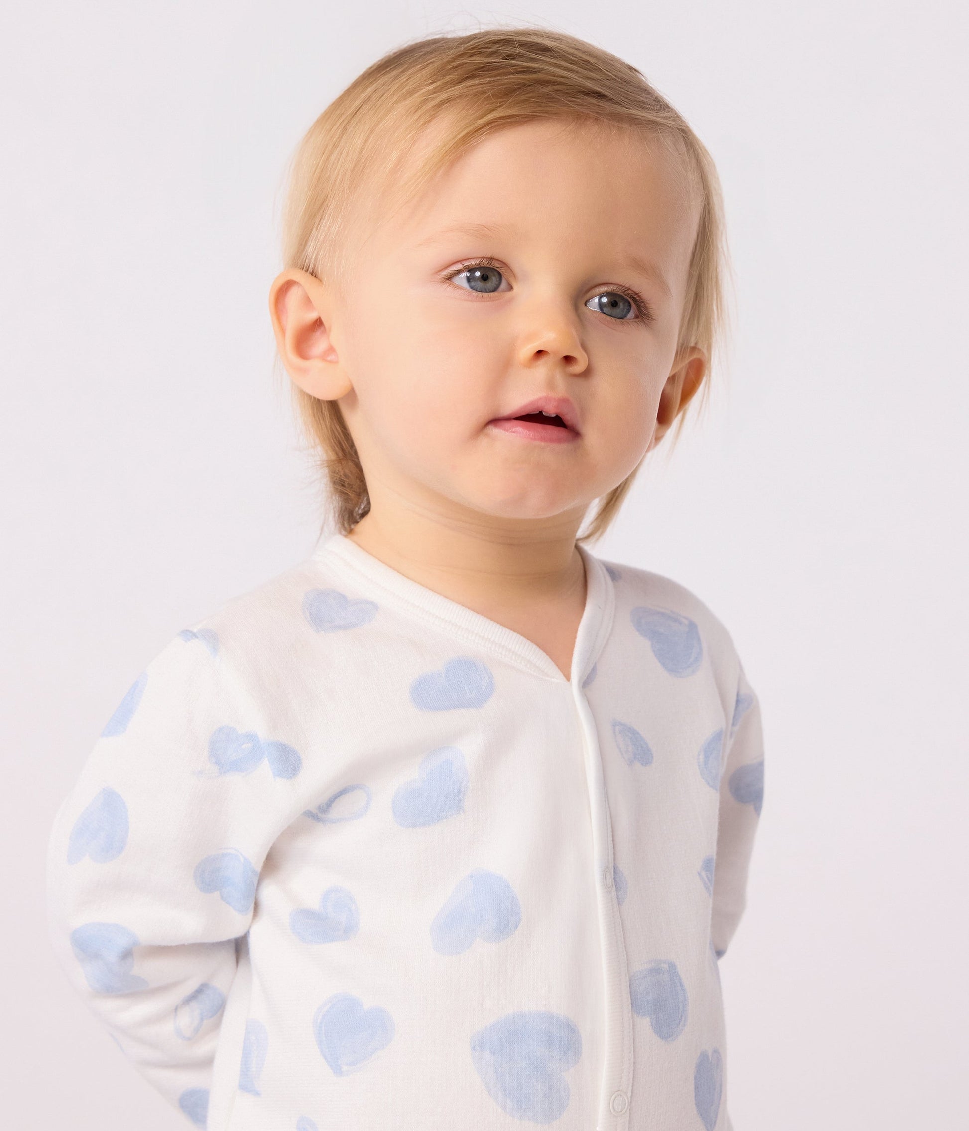 Pyjama bébé en molleton gratté à col imprimé cœurs