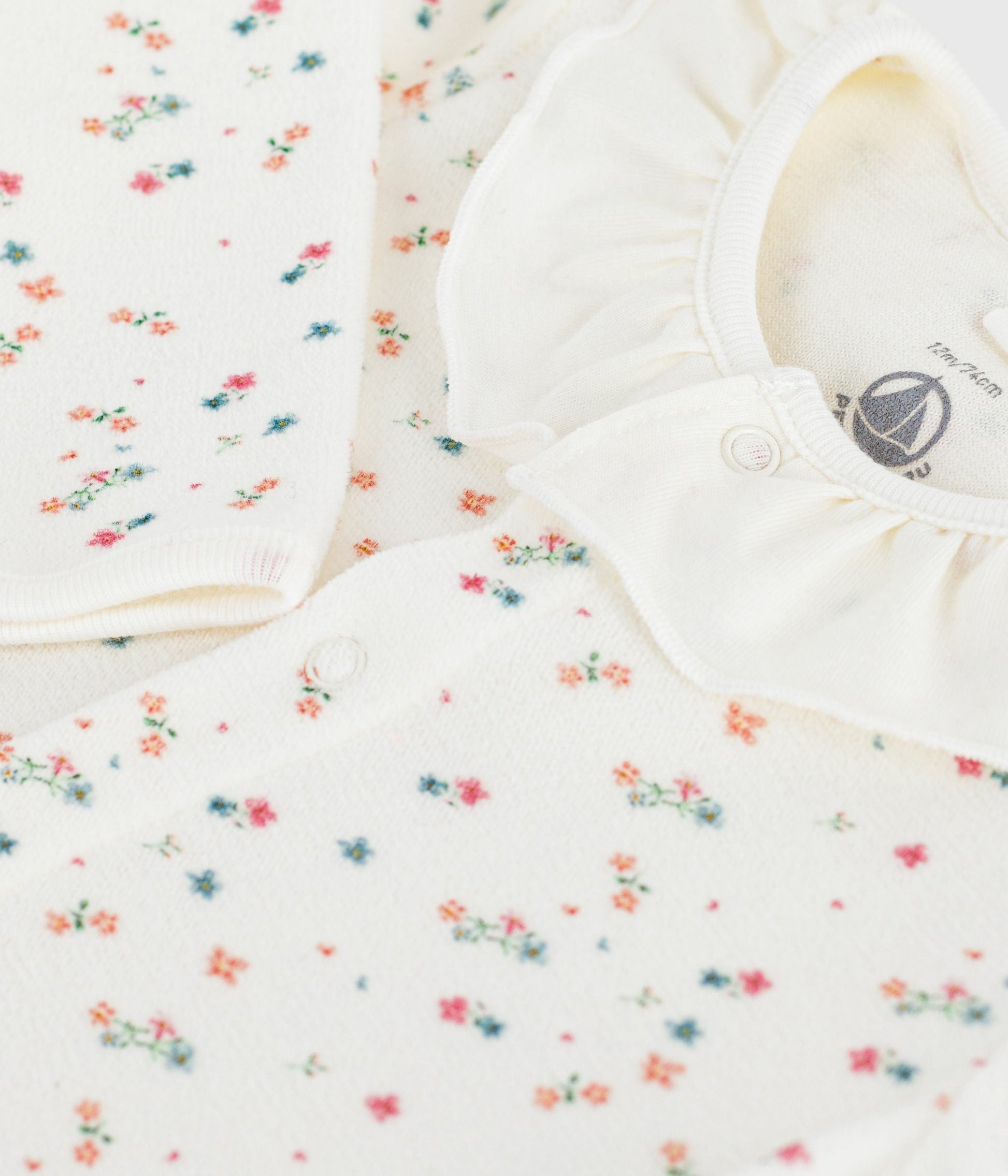 Ce pyjama raffiné et féminin, avec un col collerette, est idéal pour un cadeau de naissance.