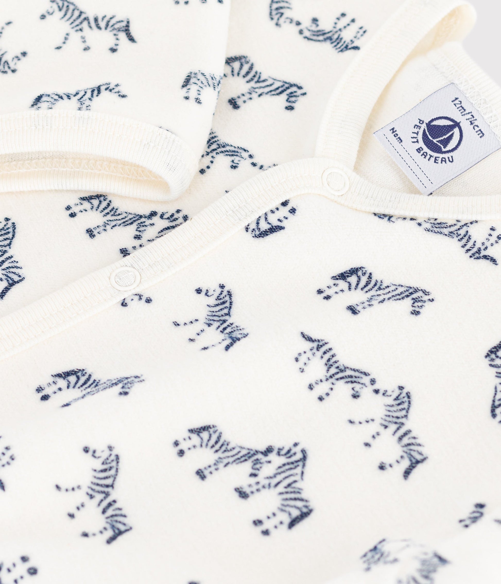 L'ouverture du pyjama se fait par boutons-pression sur le devant et à l'entrejambe.