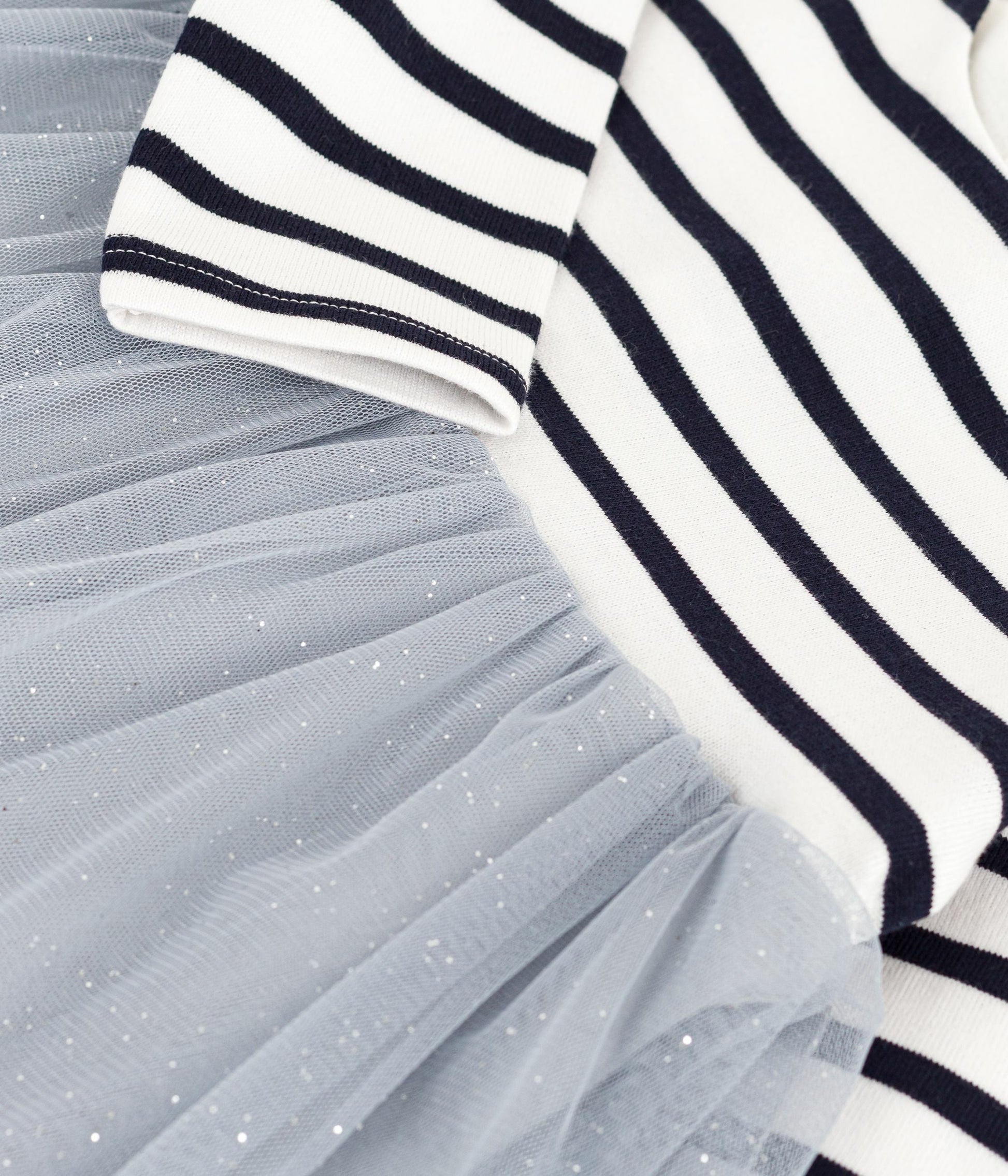 Robe festive esprit ballerine bi-matière en jersey et jupe en tulle pailleté.