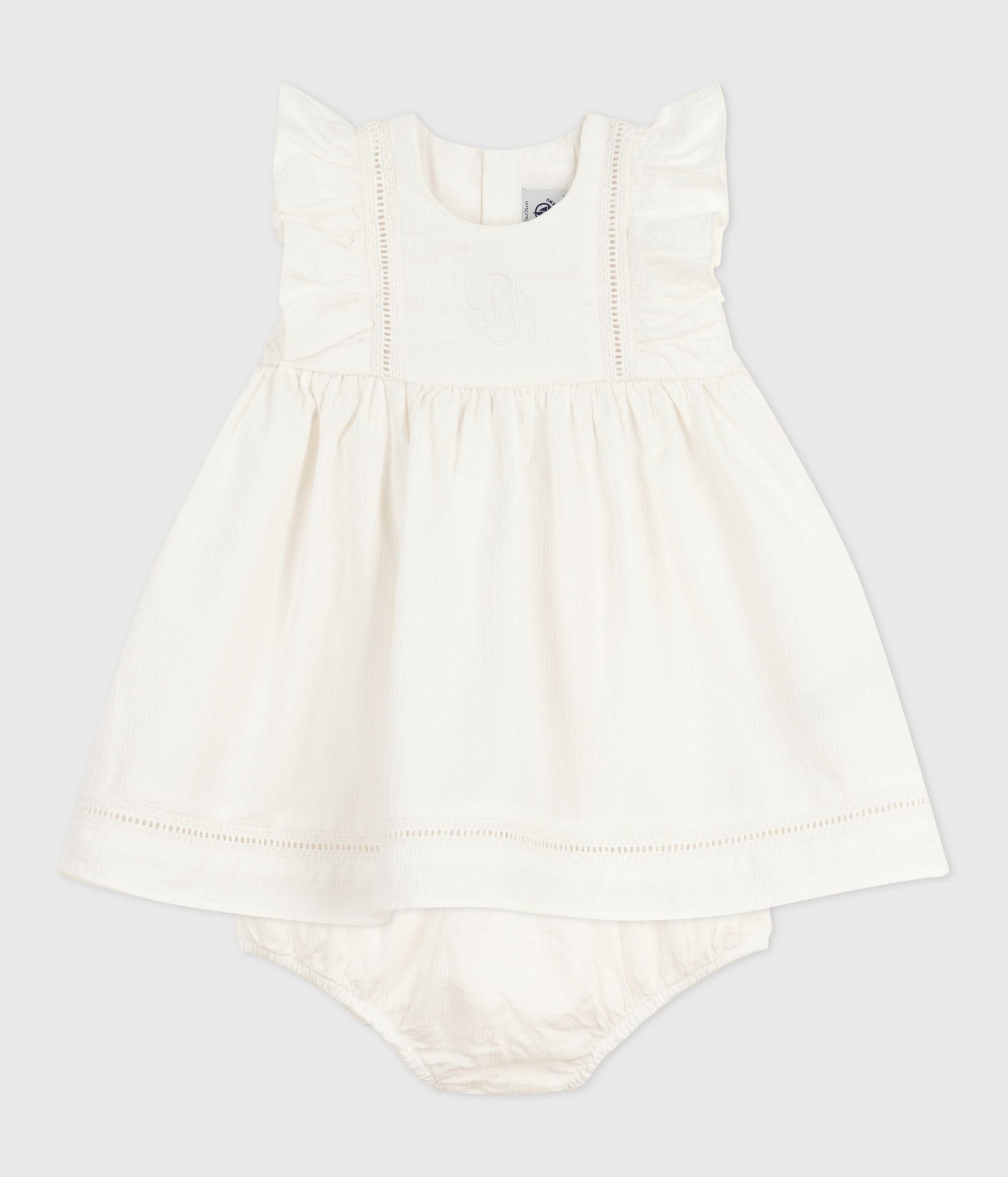 Robe bébé en coton sans manche unie et brodée avec son bloomer