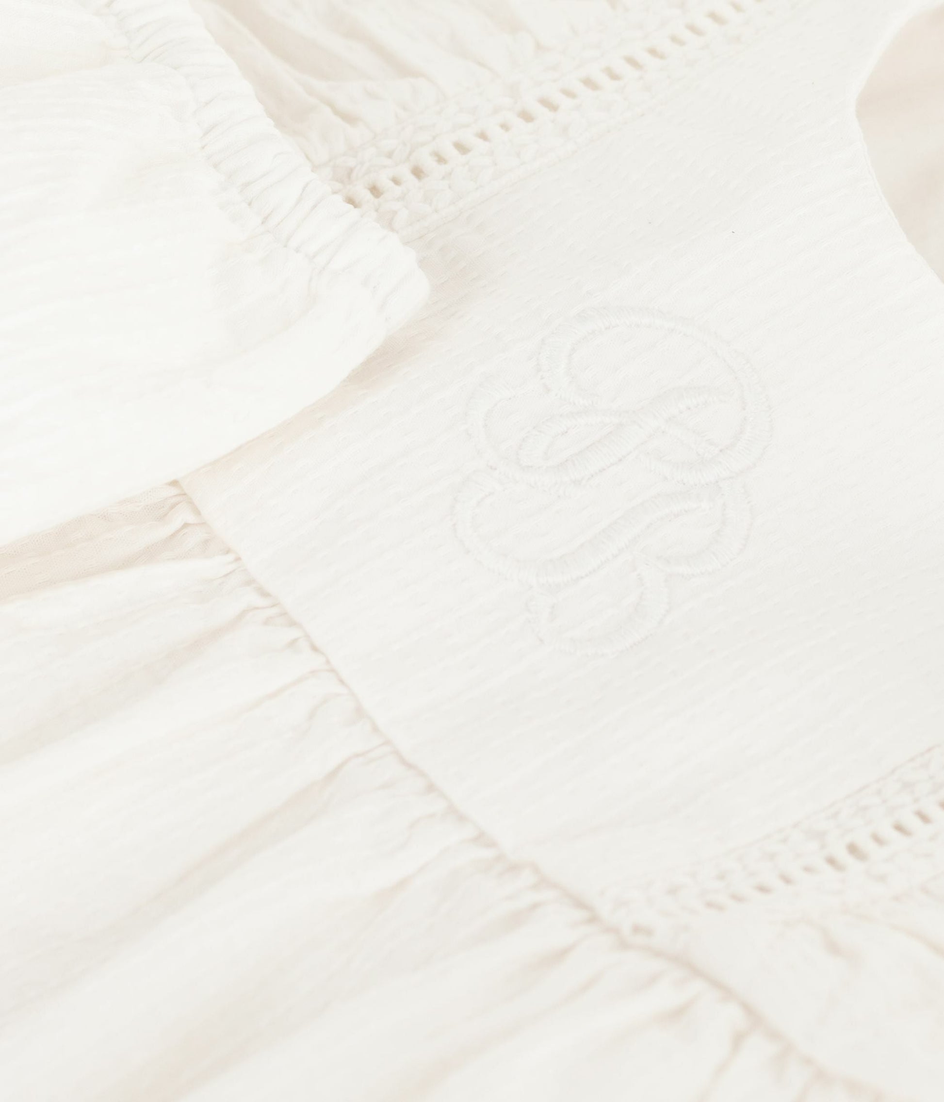 Robe fille en popeline unie à motifs brodés et ajourés, une toile légère et souple pour l'été.