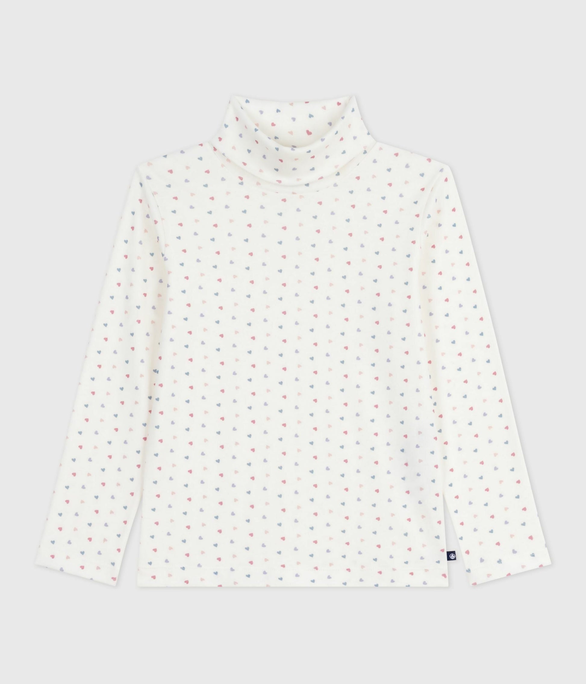 Sous-pull fille en côte 1X1 imprimé cœurs, une matière extensible et confortable.