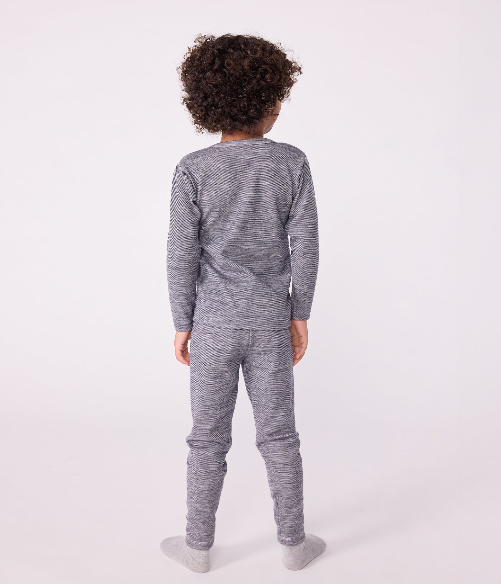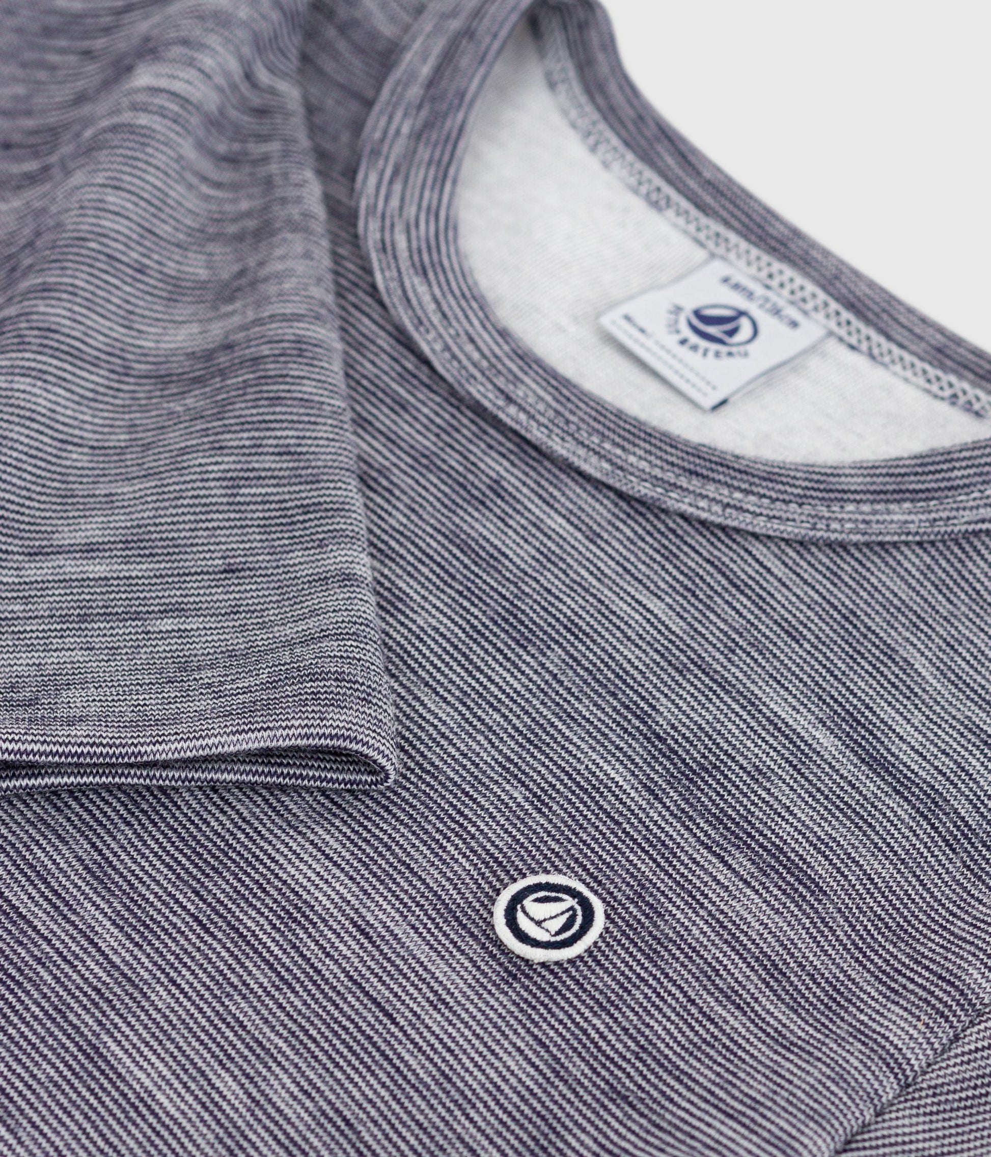 Tee-shirt enfant en laine et coton manches longues à rayures